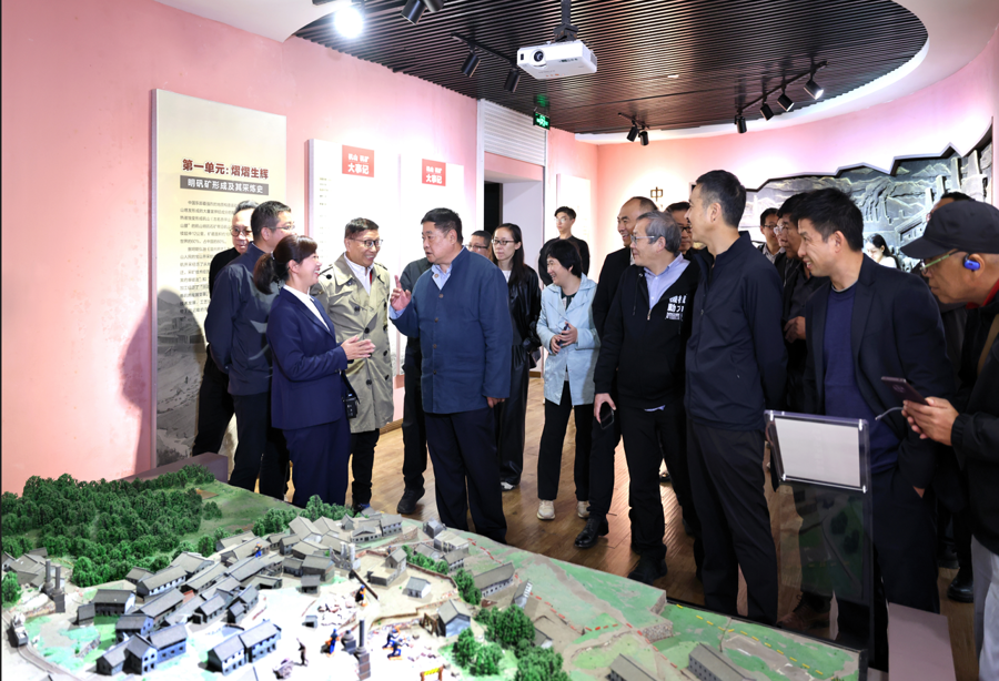在温州矾矿博物馆,导游正为专家介绍温州矾矿的历史。